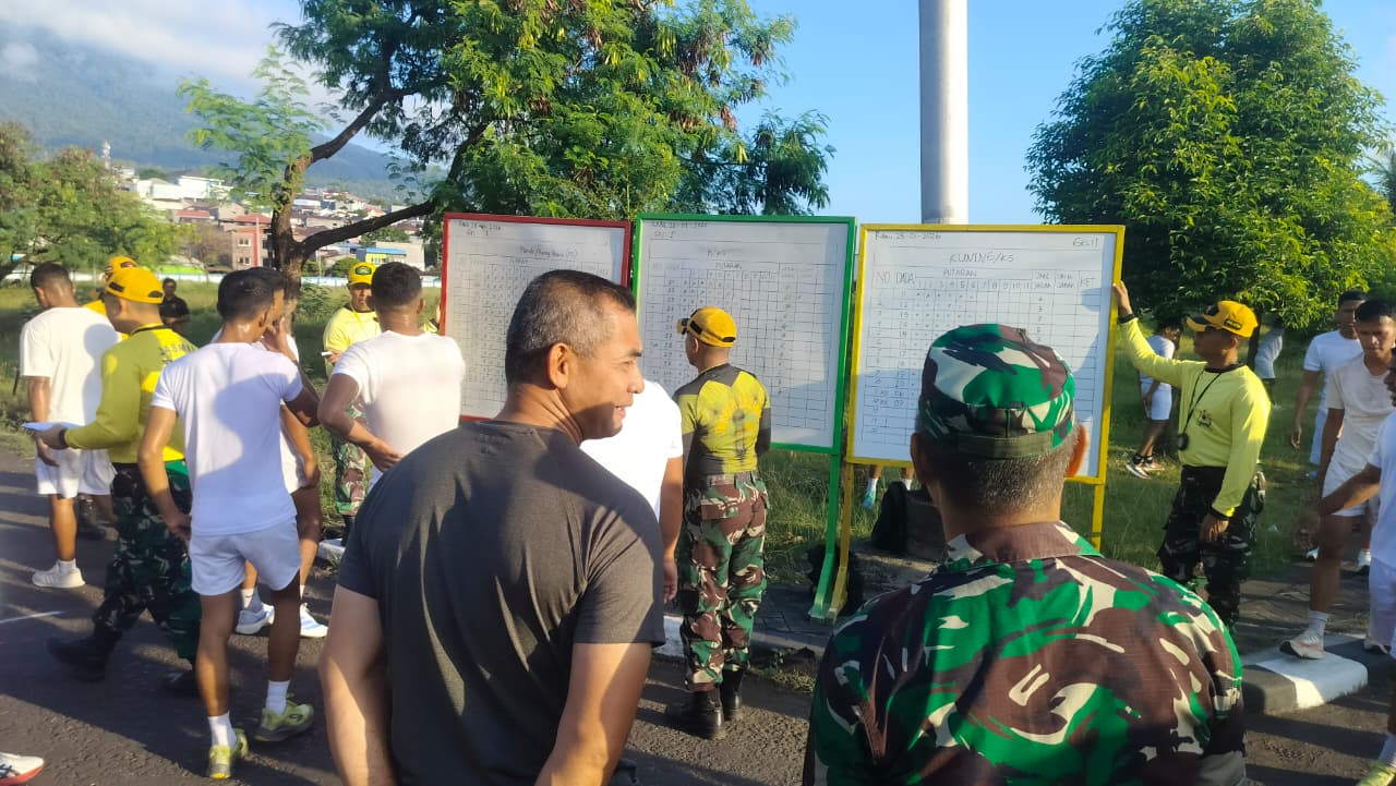 Dalam peninjauan itu, Danrem melihat langsung Garjas A dan Garjas B yang meliputi lari 12 menit, pull up, sit up, push up, shuttle run, serta renang, berlangsung di Lapangan Perikanan Bastiong, Kota Ternate, Maluku Utara, Selasa (28/01/2026).
