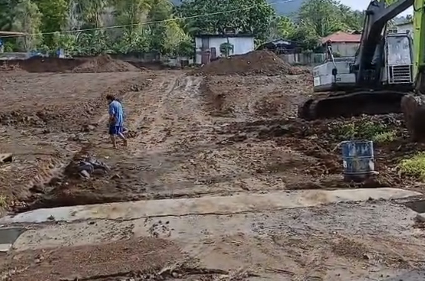 Saat hujan dengan intensitas tinggi disertai angin kencang, material galian yang tidak dipasang penghalang jebol dan menumpuk di badan jalan. Bahkan, sebagian material juga menghantam pagar beton Universitas Muhammadiyah Maluku Utara (UMMU).