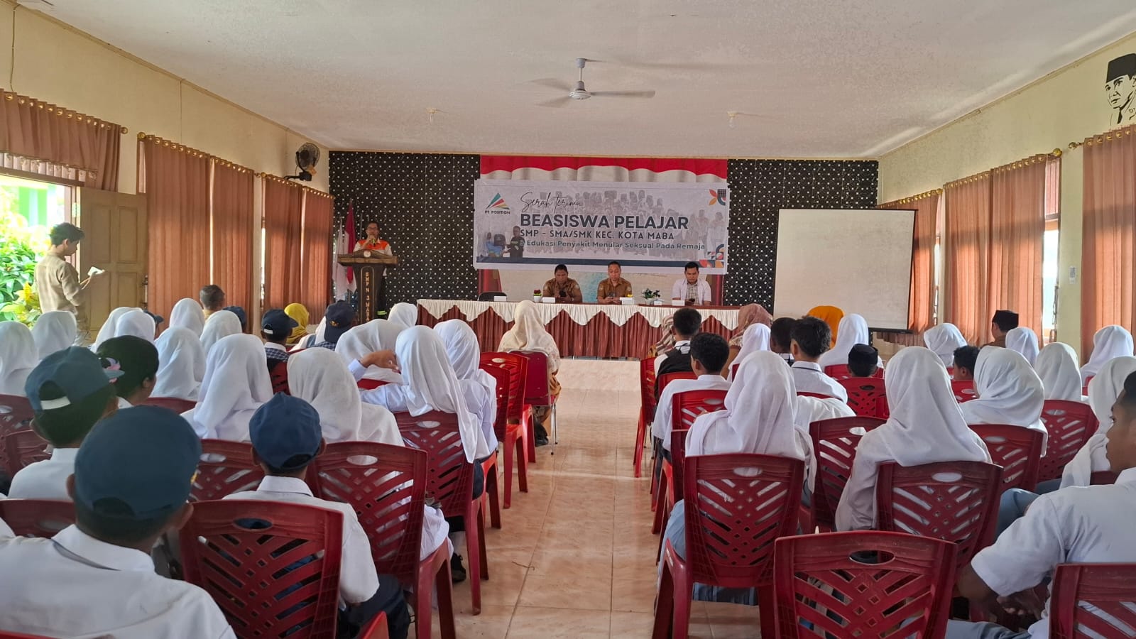Selain penyerahan beasiswa, kegiatan tersebut juga dirangkaikan sesi edukasi kesehatan tentang pencegahan Penyakit Menular Seksual (PMS) yang disampaikan oleh Dr. Riski dari Puskesmas Maba. Acara tersebut turut dihadiri oleh kepala sekolah dan guru dari masing-masing institusi pendidikan.