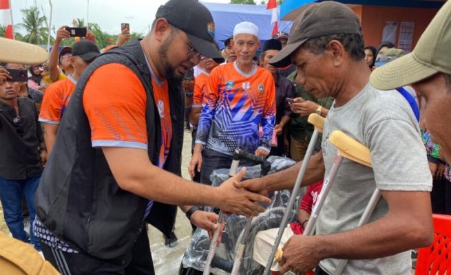 Peduli Penyandang Disabilitas, Dinsos Halsel Salurkan Alat Bantu kepada Warga Desa Gane Luar